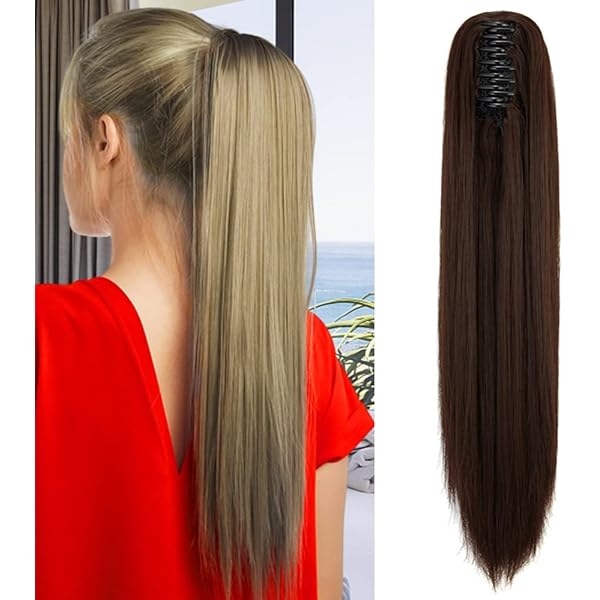 21 Inch Ponytail Hair Extension Clip In With Jaw Claw Synthetic Hairpieces For Women Dark Brown Straight Ponytail Extension Amazon Co Uk Beauty